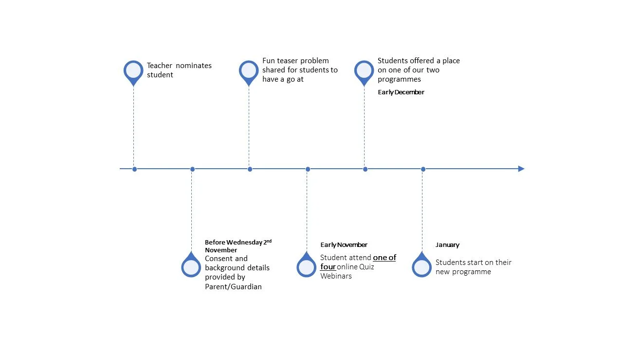 We only accept nominations from teachers for the programme, so get in touch with your child’s maths teacher as early as possible!